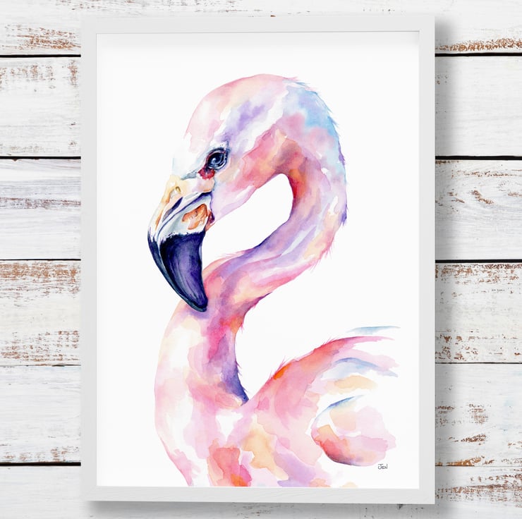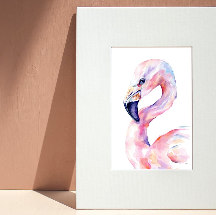 Flamingo - chic fine art print - add some pink glamour to your wall, watercolour