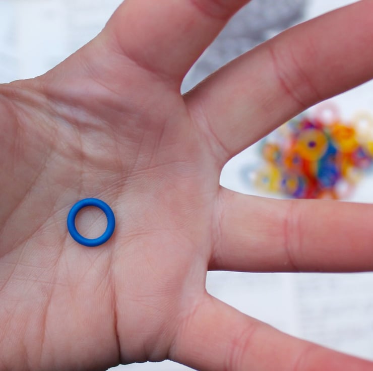 Rainbow Rings, soft snag free stitch markers for knitting. These cheery stitch markers will brighten any day. Comfortably fits up to 6.5mm (US 10 12) knitting needle, shown here on a 4mm (US 6) needle. They're made of a firm but squishy synthetic rubber. The squishy-ness makes these THE most comfortable stitch markers available to use during long knitting sessions. If you accidentally knit one into your project, it can be easily snipped out!