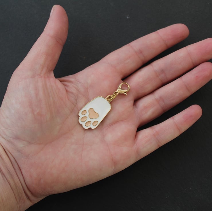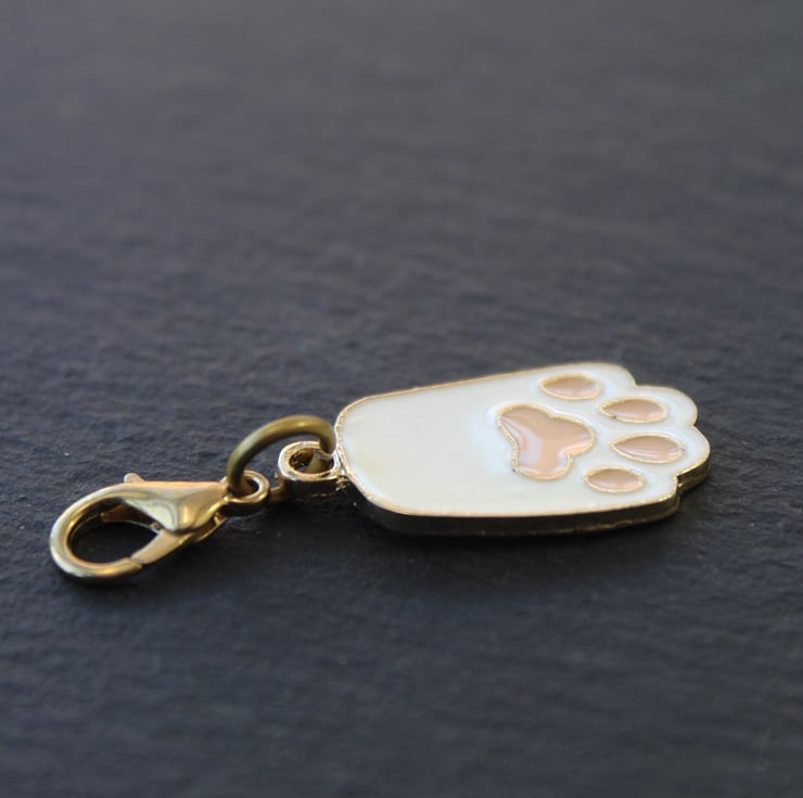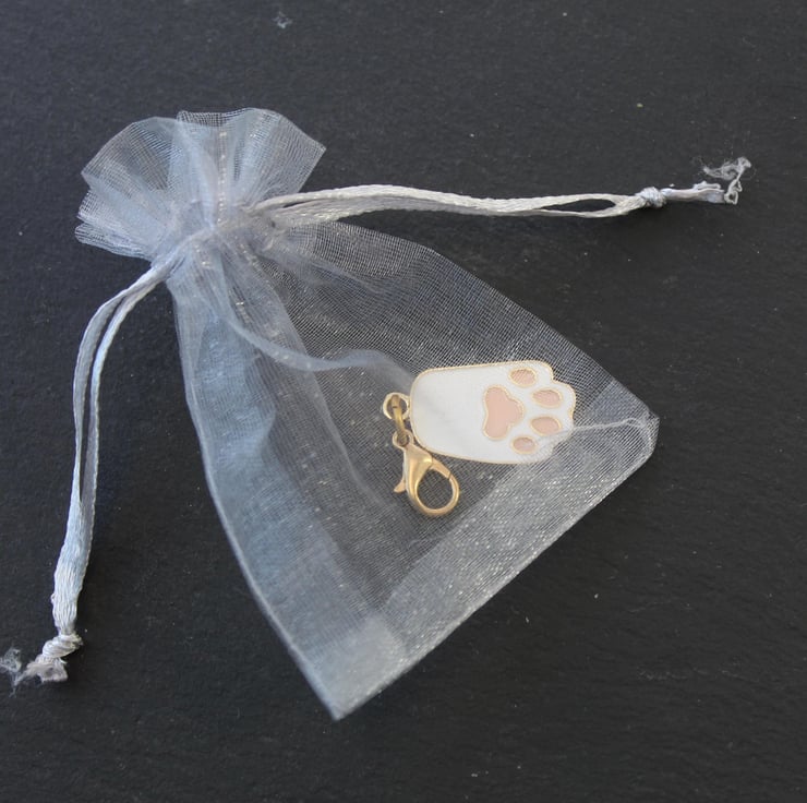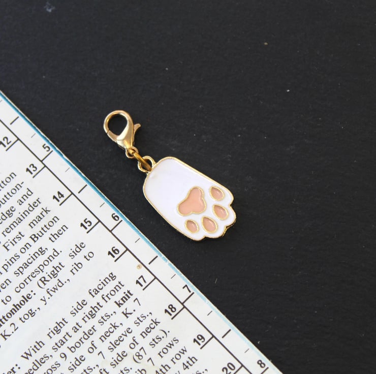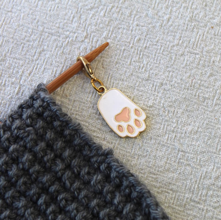 This enamel paw progress keeper or removable stitch marker will add some feline fun to any project. Can be used to grab a dropped stitch, show the right-side of your work or mark a mistake to rip back to. Or just clip the enamel paw any where requiring a touch of cat fun!