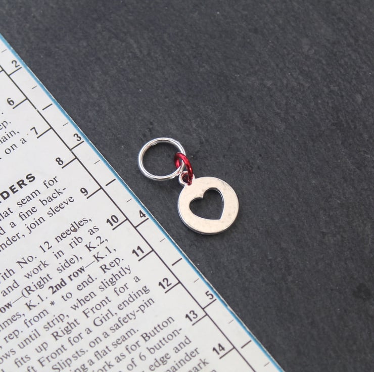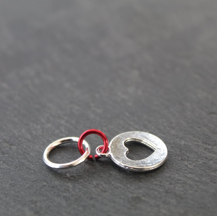 Smooth snag free stitch marker for knitting. Made with the finest materials, each smooth round charm is attached to the snag free ring with a red jump ring that represents love. It is this attention to detail that makes Rebecca's Room accessories a step above the rest!