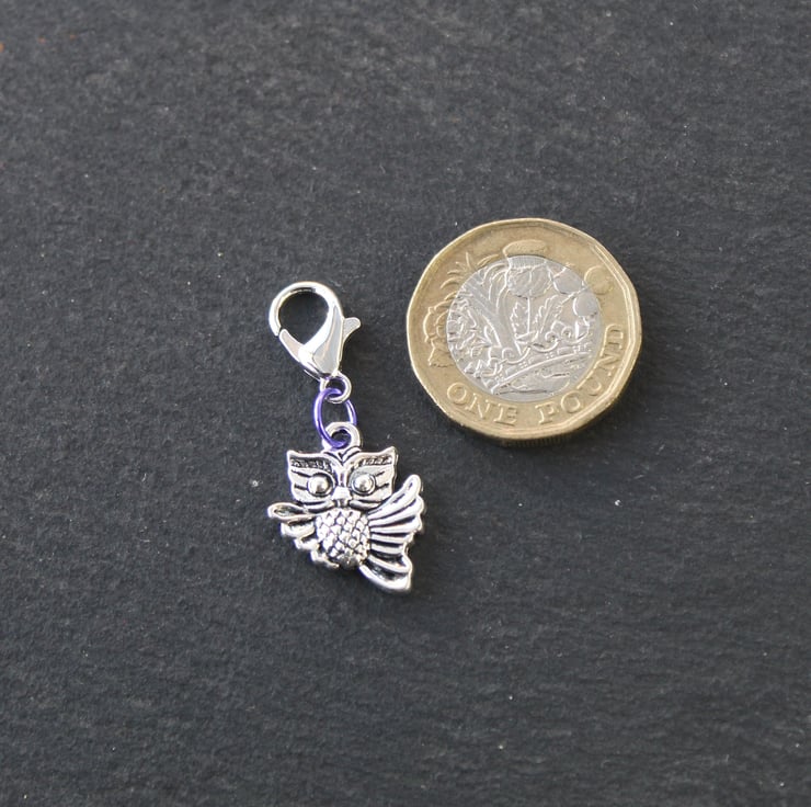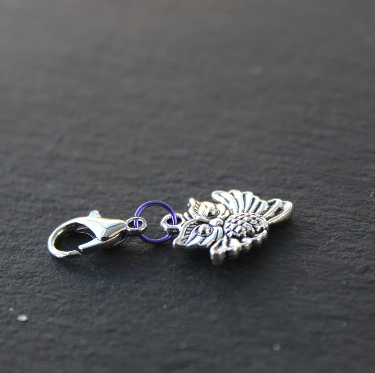 Add a touch of flying owl fun to your favourite fibre project. Can be used as a removable stitch marker or progress keeper.