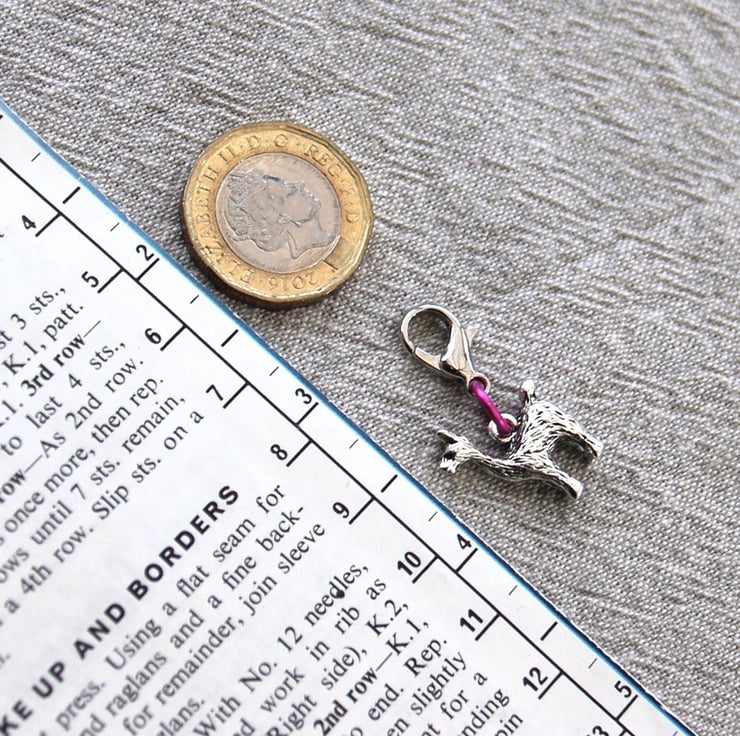 Always ready to catch a dropped stitch, show the right-side of your work or mark an error to rip back to. Perfect for clipping to your project bag so you always have a marker to hand when you need it. A cute addition to any zipper!
