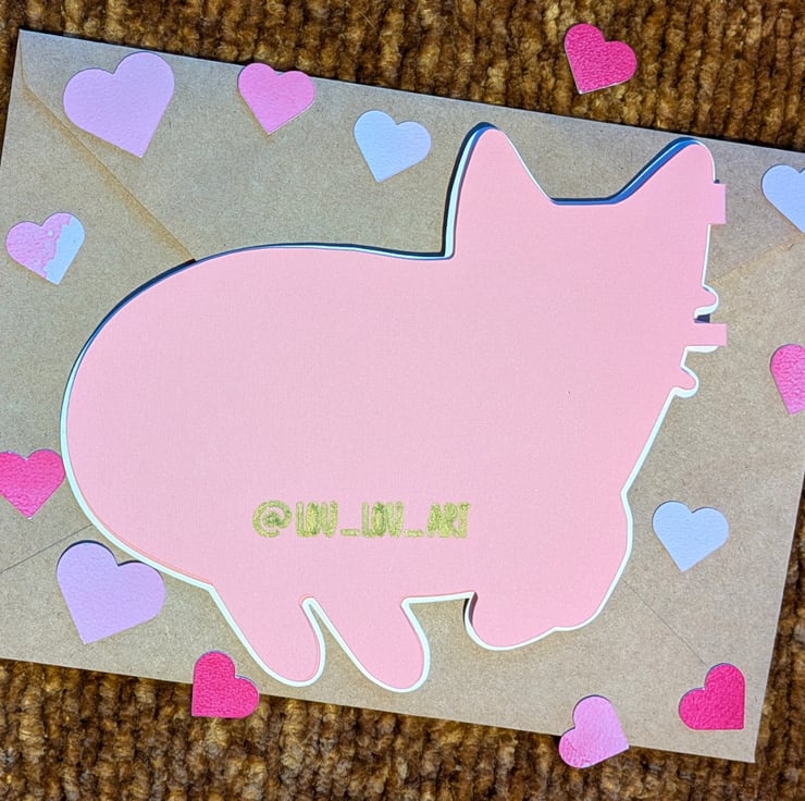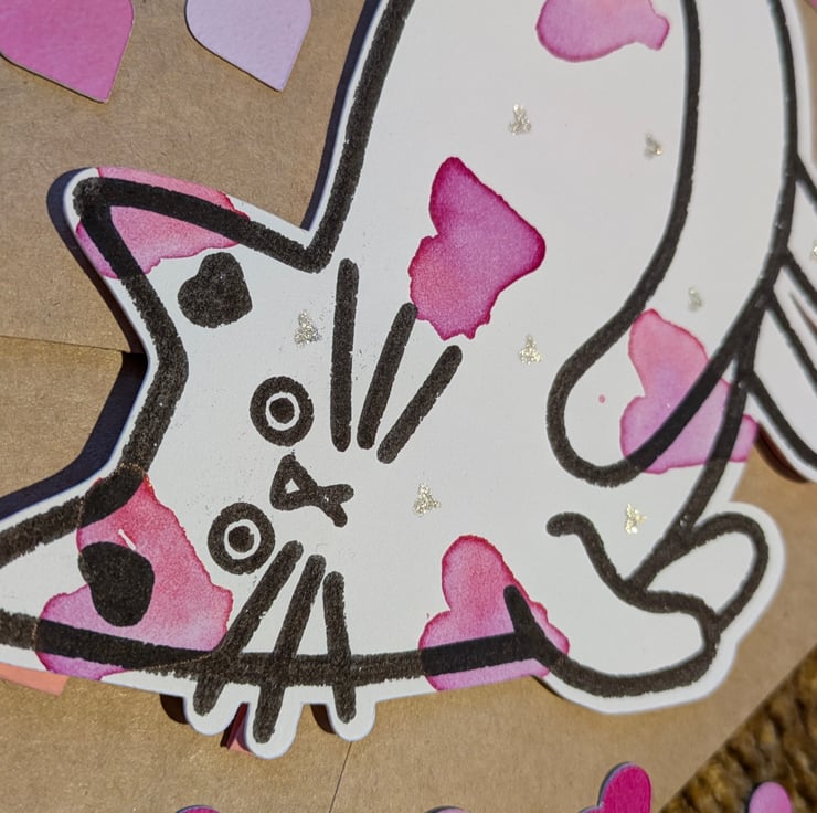 Cat card hand painted watercolour shaped greeting card love hearts 10