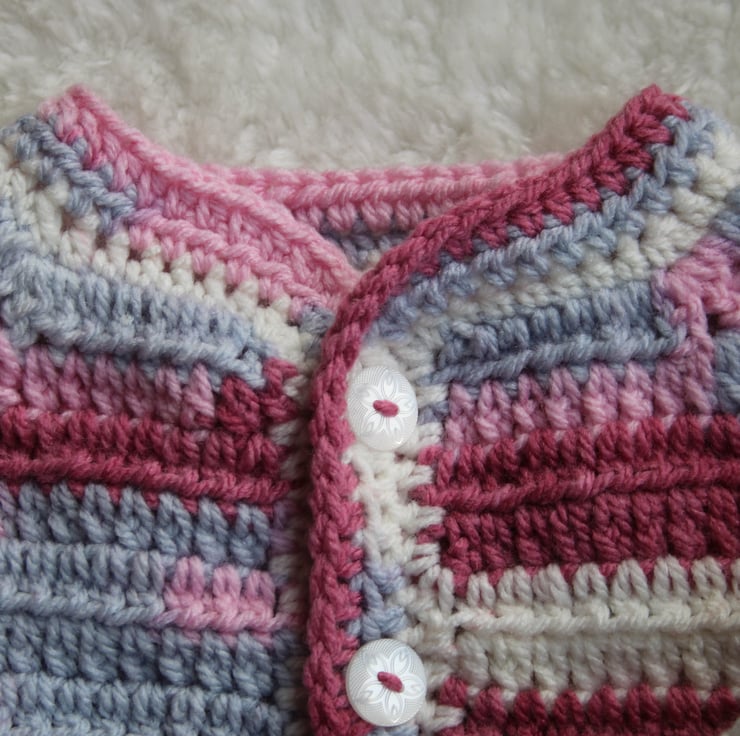 This is a colourful long-sleeved cardigan makes a nice change from the more traditional pastel coloured cardigans. Adds a pop of colour which is guaranteed to make people smile.