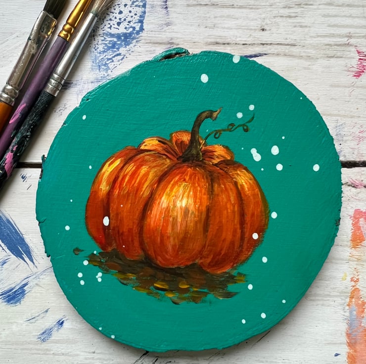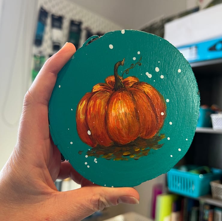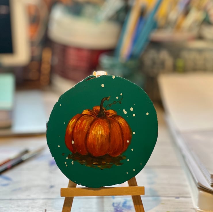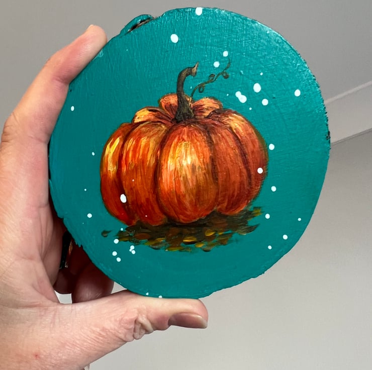 Mini Wood Art - Hand Painted with a magical pumpkin.