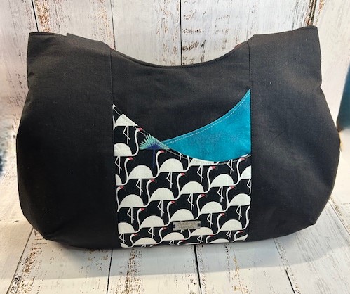 - Stylish prints: Art deco stylised swan print on the external slip pocket and reverse side, paired with coordinating teal cloud fabric.