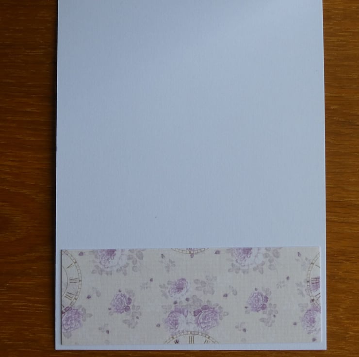 Inside the card there is a band of matching cream and lilac card across the bottom leaving lots of space for your own message.
