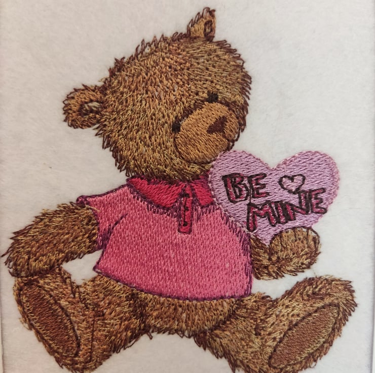 A beautifully embroidered and hand crafted greetings card. This Teddy is a real cutie and ideal for your loved one this Valentine's Day.