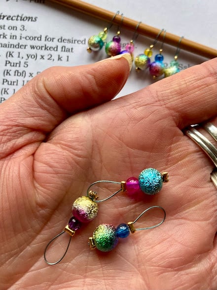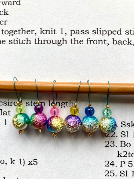 Stardust 8mm beads strung on smooth coated wire, perfect for socks or lace projects.