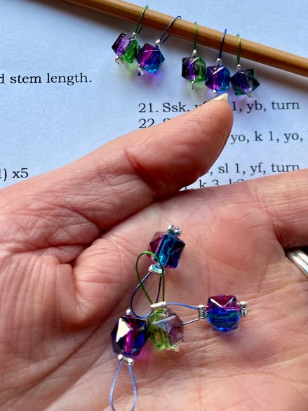 Two tone cube 8mm acrylic beads strung on smooth coated wire, perfect for socks or lace projects.