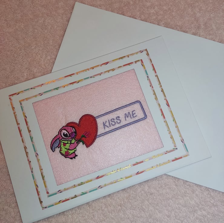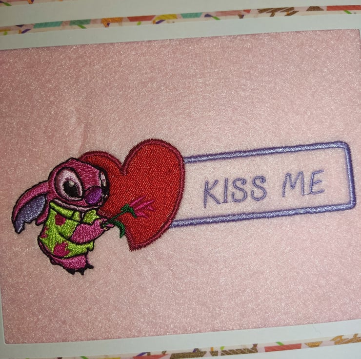 Nannie's beautiful interpretation of Stitch - Kiss Me - Valentine's Day Card