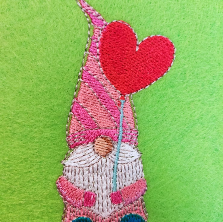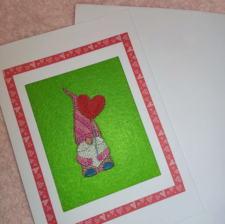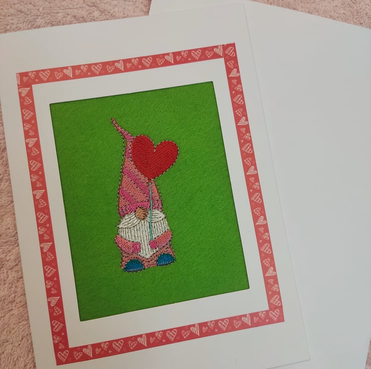Beautiful hand finished, silk embroidered Gonk Valentine's Day card.