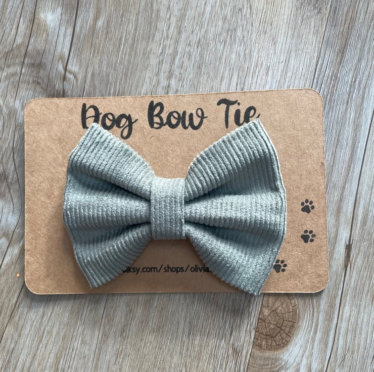 Stylish blue dog bow tie that easily attaches to most medium cat and dog collars made with a cord type material with two elastic hoops on the back that slide straight onto colours. Perfect for any occasion.