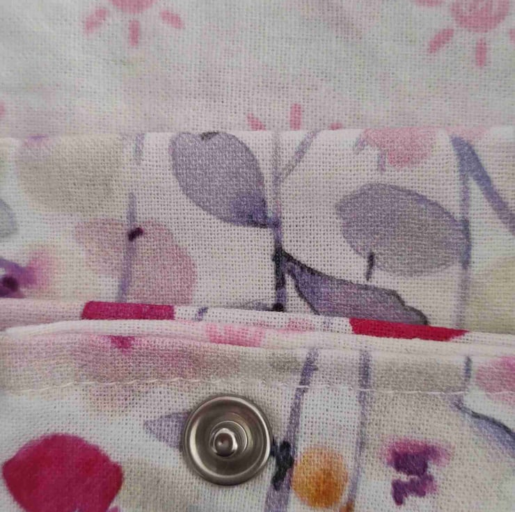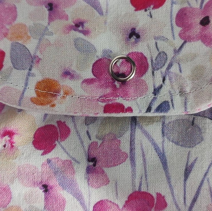 This card holder purse is handmade with a soft flower design cotton material and is fully lined. It has three sections inside, which are suitable for multiple cards, money, or small items.