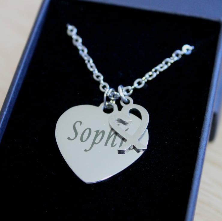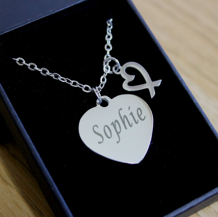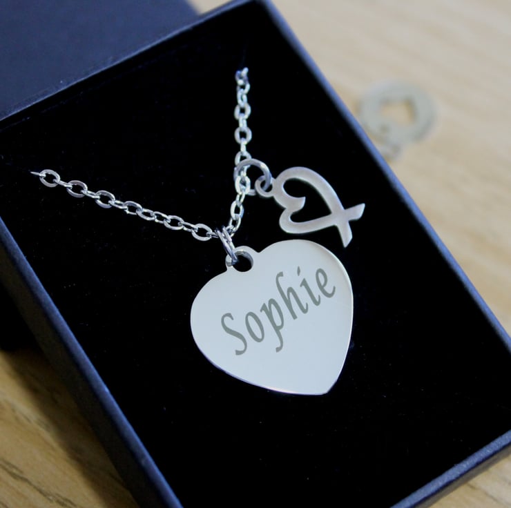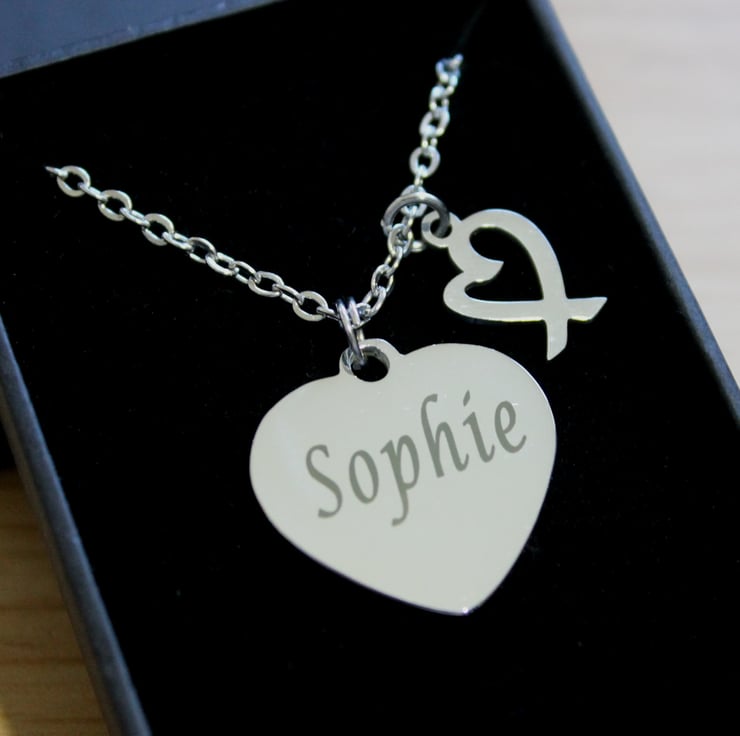 Please message me with the message you would like engraving.I can fit around 30 letters on each side of the heart. Please note your message will engraved exactly as you have typed it, including upper/lower case letters.