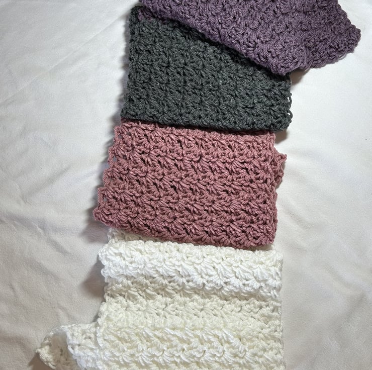 Handmade crocheted chunky extra long scarf, 86” long, 9” wide. Crafted from 100% acrylic yarn. This stunning chunky crocheted scarf provides cozy warmth and a pop of colour for those cold days. Wear it long, or wrap it around two or three times for extra warmth, a very versatile accessory.
