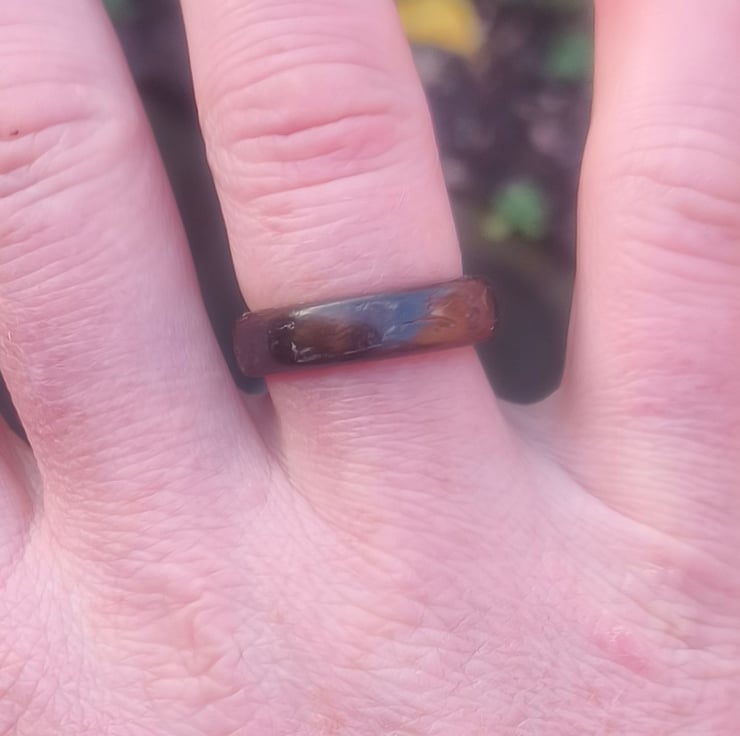 Due to each ring being made individually, they do vary slightly in colour and grain from what is pictured. We will happily send a picture of your exact ring before despatch if you so wish.