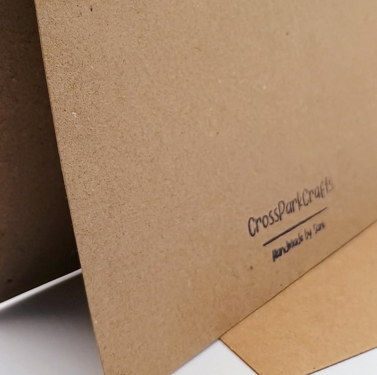 Made using brown Kraft, pre-creased, recycled cards sealed in a protective, biodegradable, clear sleeve.