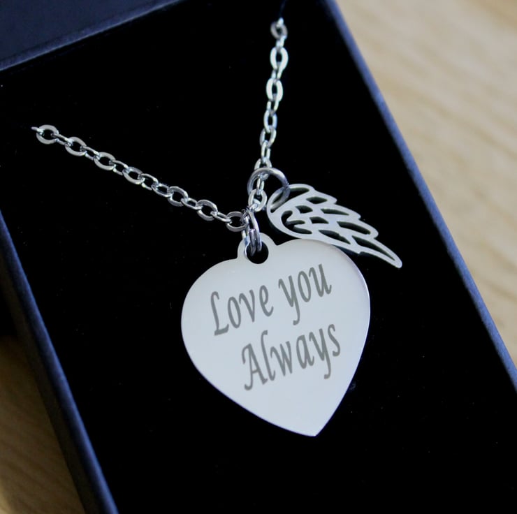 Gift box colour/design may vary. All photographs are taken by myself. As your necklace is personally engraved to your specification, regretfully we are unable to offer refunds on personalised engraved items. If you require a particular font please contact us. Photos show just an example of engraving, your necklace will be engraved to your specification