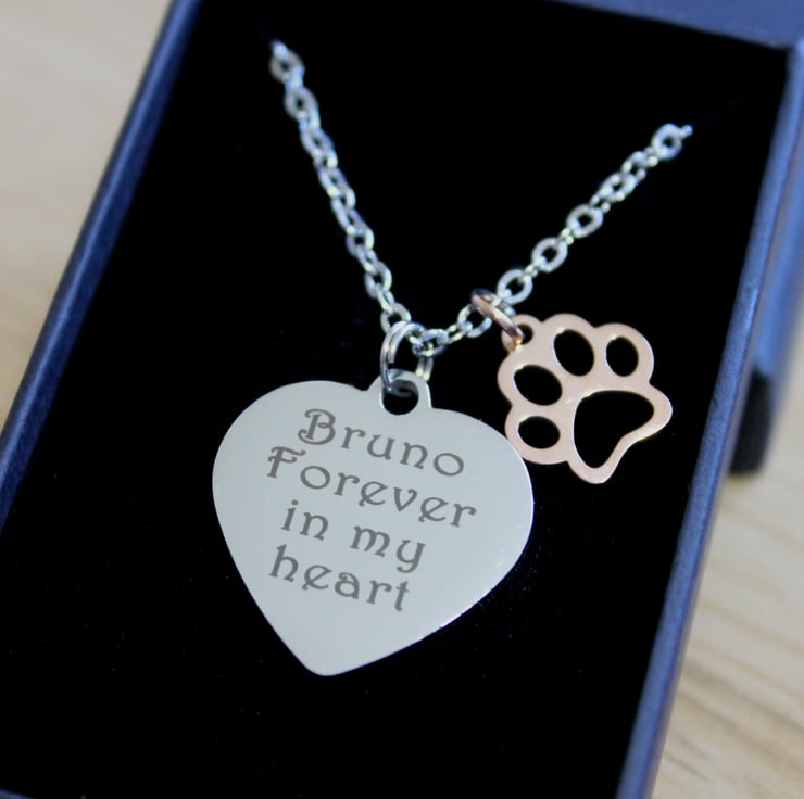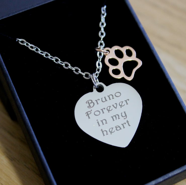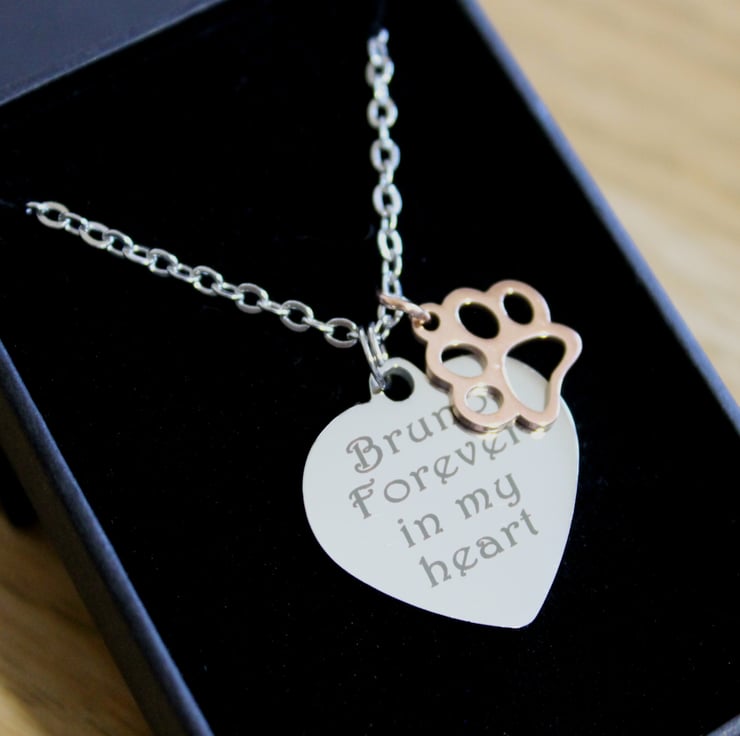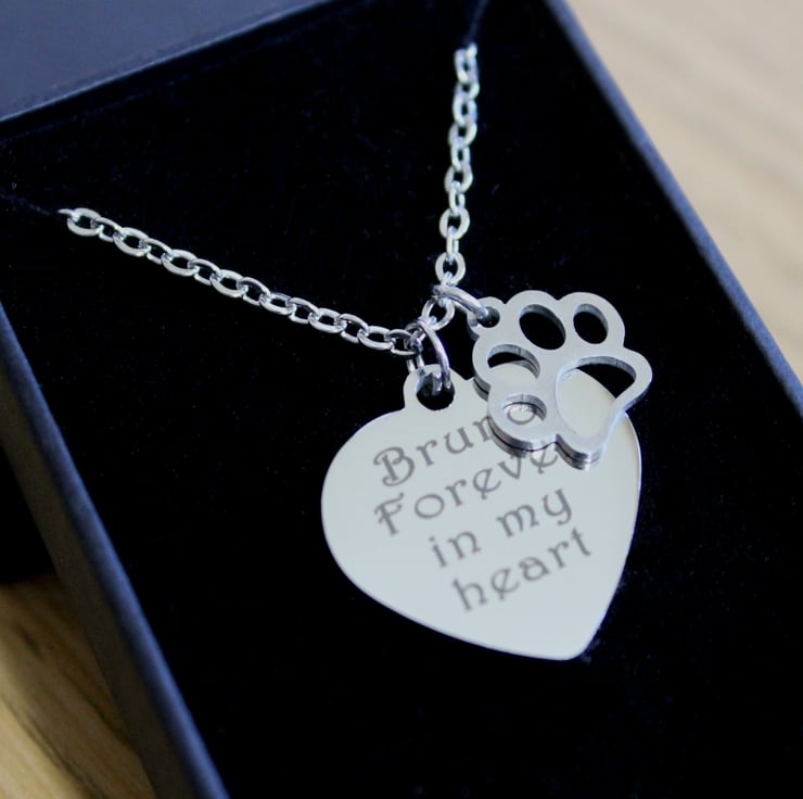 Stainless steel heart charm with a mirror finish, teamed with a paw charm in your choice of silver or rose gold
