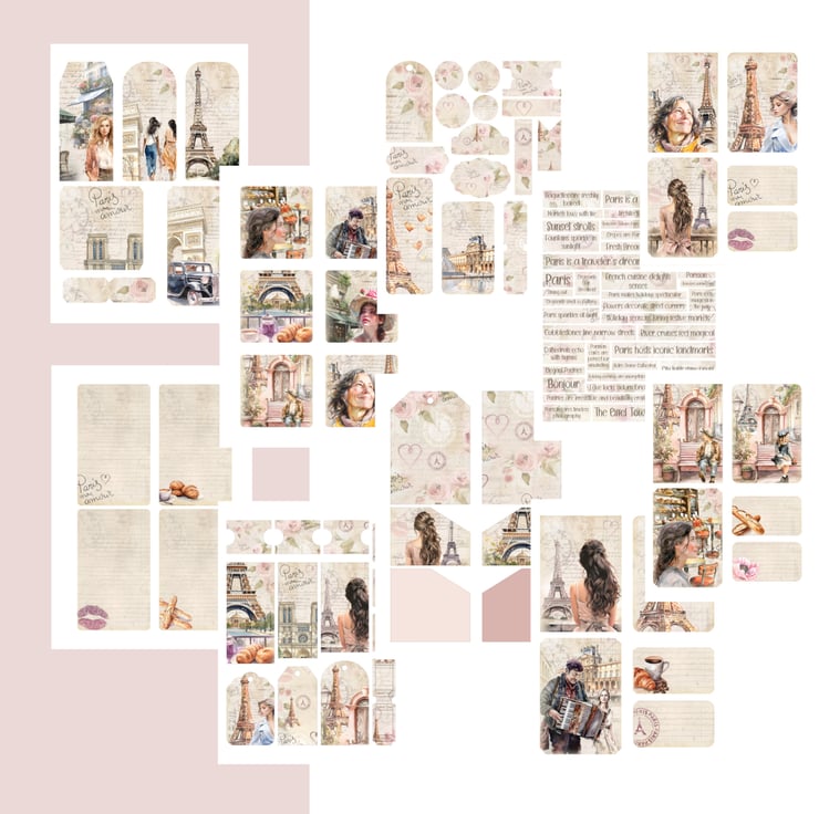 Paris kit Scrapbooking, Ephemera, Journal, Digital Download