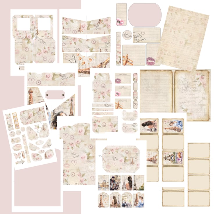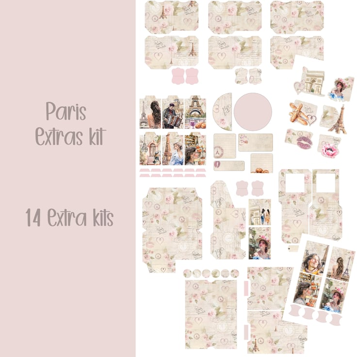 Paris Extras kit Scrapbooking, Ephemera, Journal, Digital Download