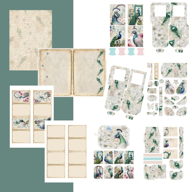 Peacock Feathers Extras kit Scrapbooking, Ephemera, Journal, Digital Download