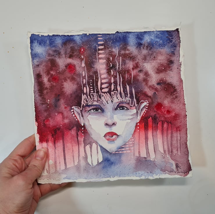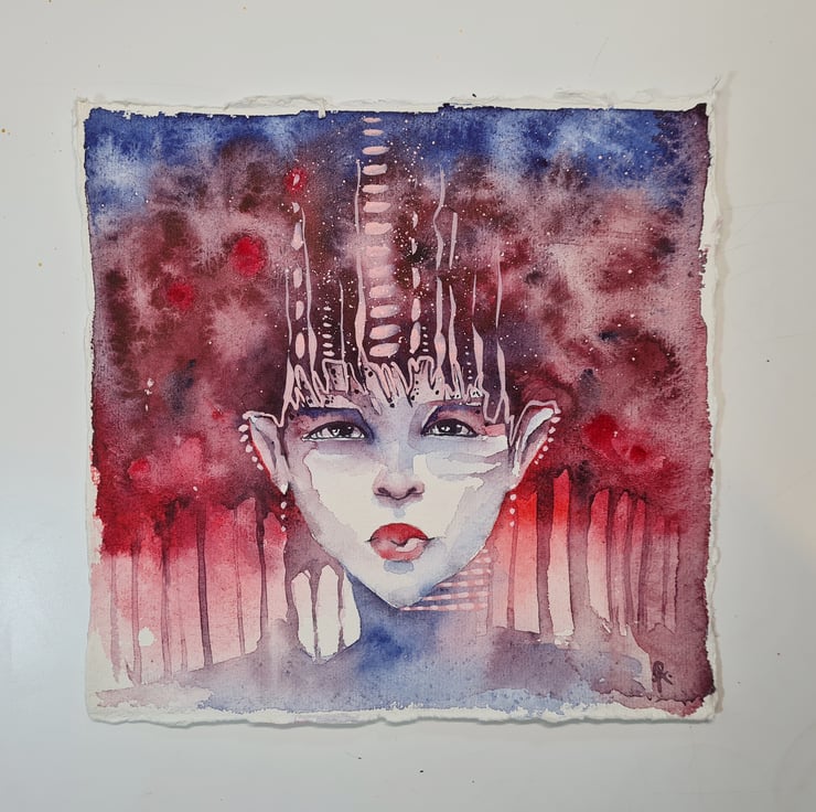 Original intuitive, loose watercolour painting - one in a series of semi abstract surreal portraits.