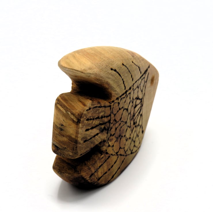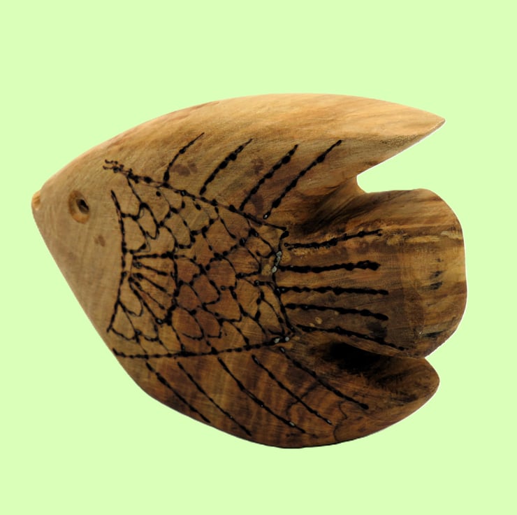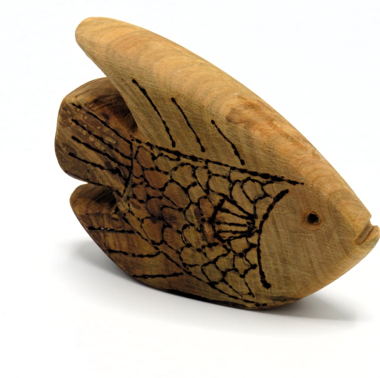 My Inspiration came from my love of fish, wood and carving its profile with my trusty spoke shave and my late fathers American Stanley sweetheart chisel from the 1940’s. This fish gave me the connection to my forefathers in spirit, and in the feel of shaping these fish and the desire to carve wood to reduce stress and anxiety. These fish are small enough to handle and reduce stress levels rather like a stress ball.