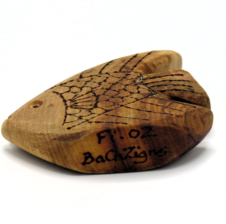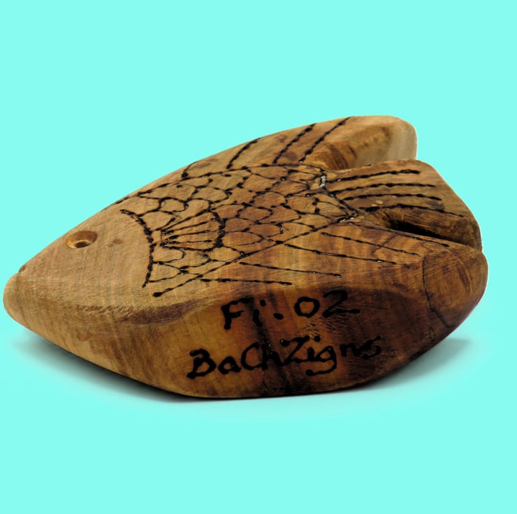 This fish is made from organic, natural, solid wood and will distort if put in water or to near a heat source, they will discolour if left in direct sunlight. This fish is not suitable for young children.