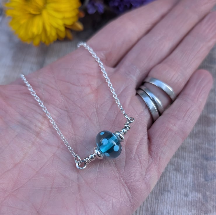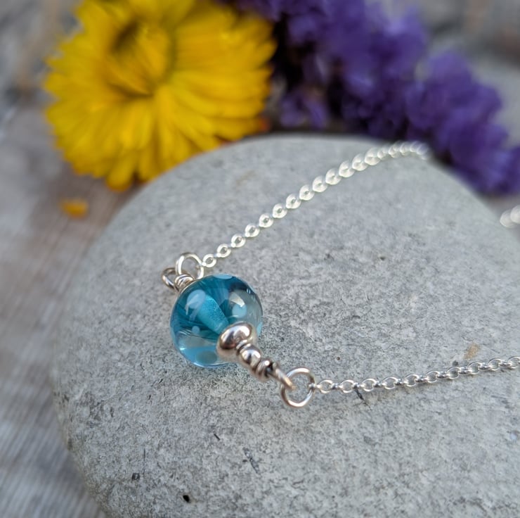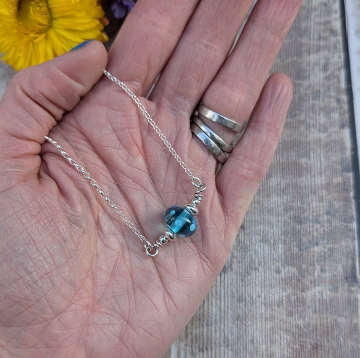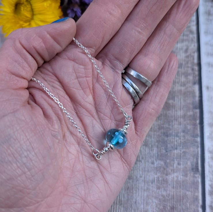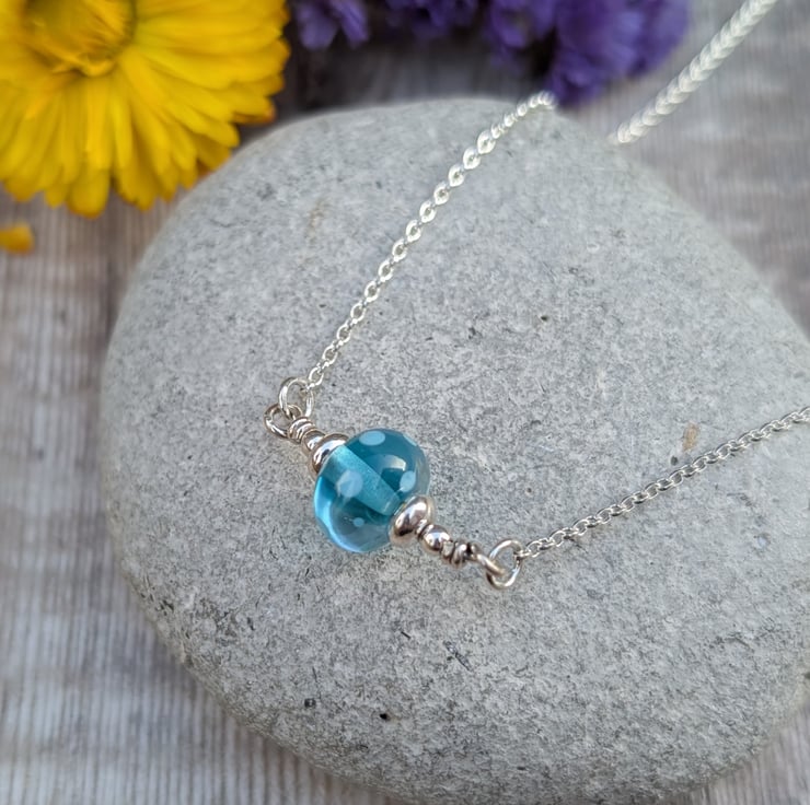 Handmade in Bristol, UK, this necklace is a versatile addition to your jewellery collection, perfect for everyday wear or as a thoughtful gift. The combination of artisan glass and sterling silver creates a timeless piece with a unique charm.