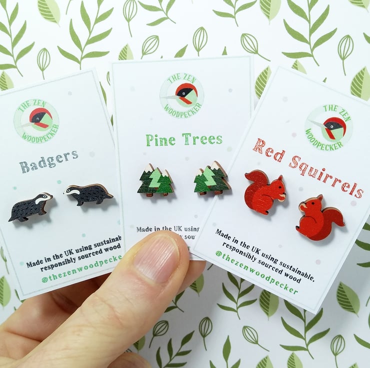 This is a selection of sample earrings. In making my final designs I go through a design process of tweaking sizes, colours and types of wood so these are the earrings I made at the start of that process. They have nothing wrong with them...they just didn't quite match up to how I wanted the final item to look...but they are too good to sit in a box in my studio so I am selling them at a discounted price!
