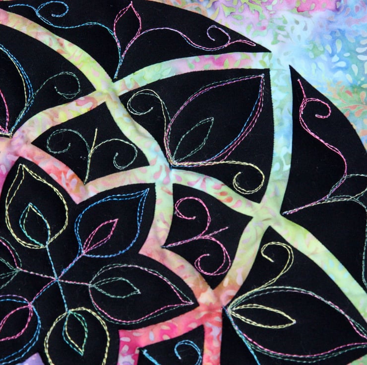 This design uses either a craft knife or sharp pointed scissors to cut the sections as well as raw edge applique.