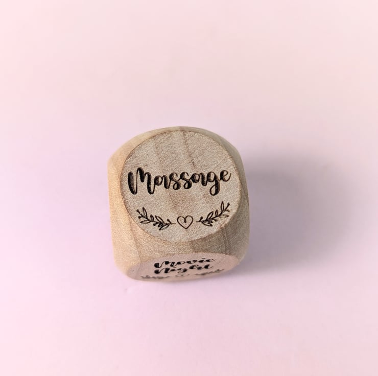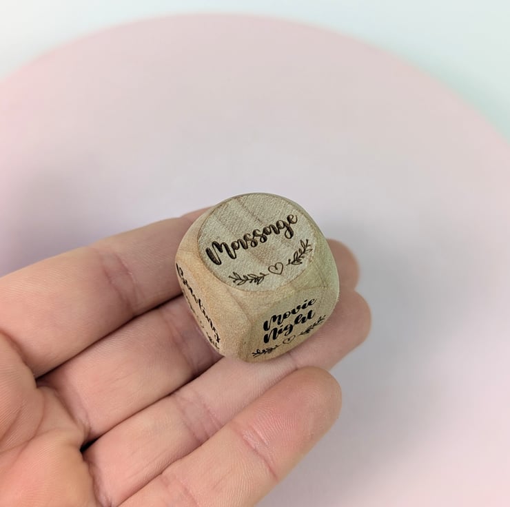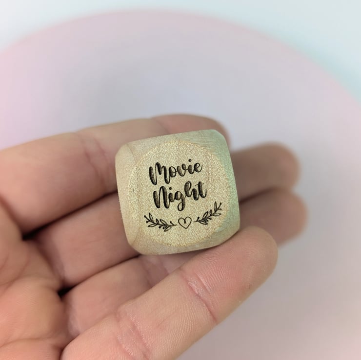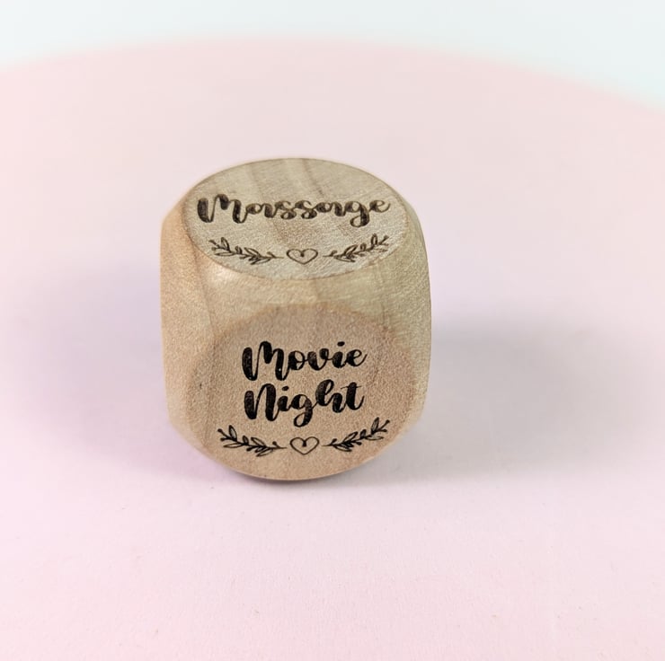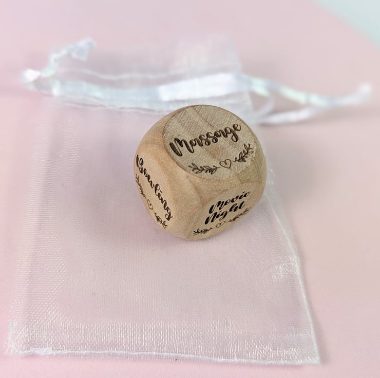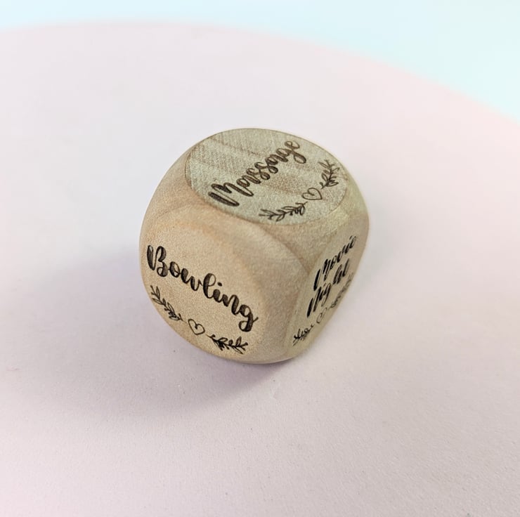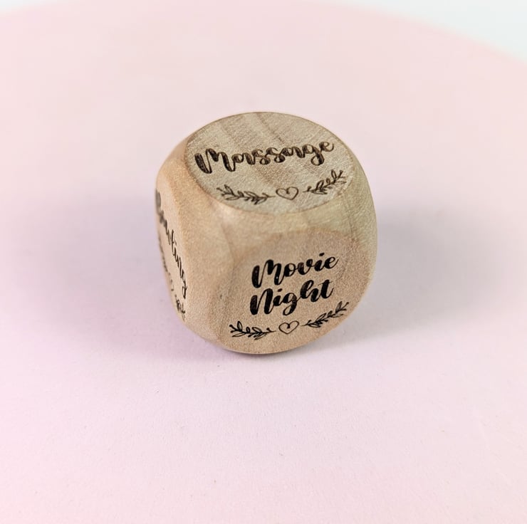Personalized Date Night dice made of wood. The perfect gift for indecisive partners or friends to decide what to do.