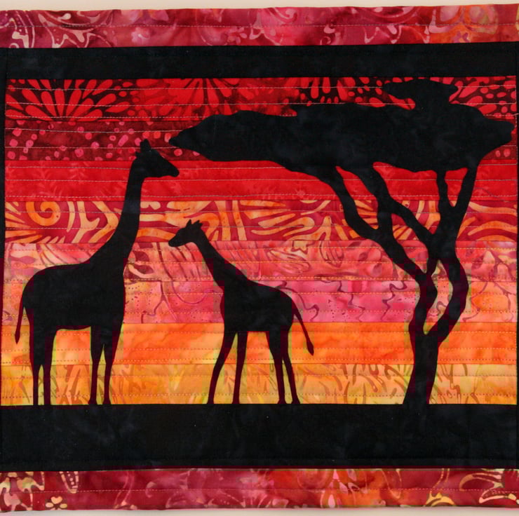Full kit contains batiks, Bondaweb, wadding, backing fabric, and colour step by step instructions and full size templates. The fabrics may differ from those in the photographs but will be of the same quality. If you wish to see the current fabrics used please contact me for a photo.