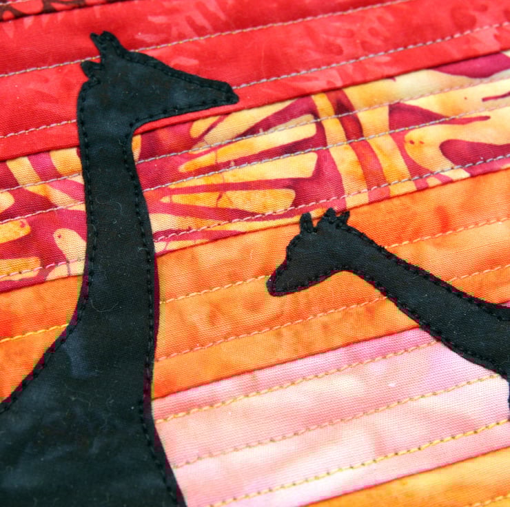The art quilt measures 29cm x 38cm / 11 1/2 x 15 inches.