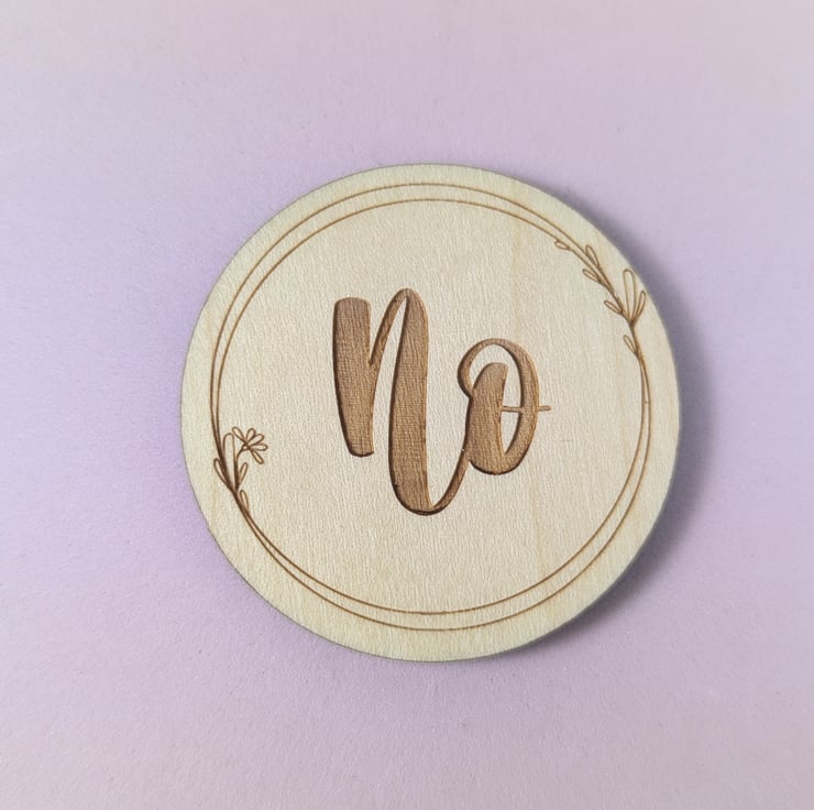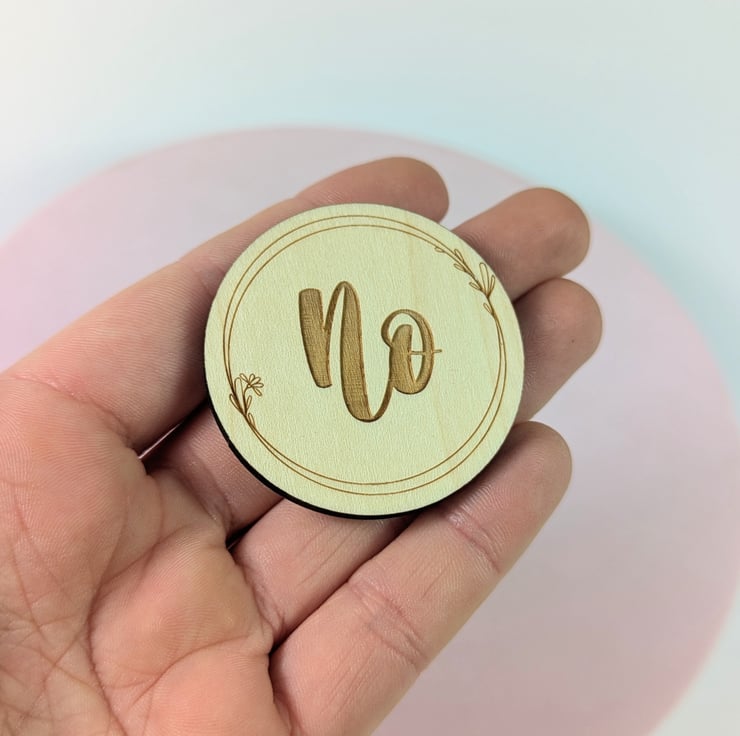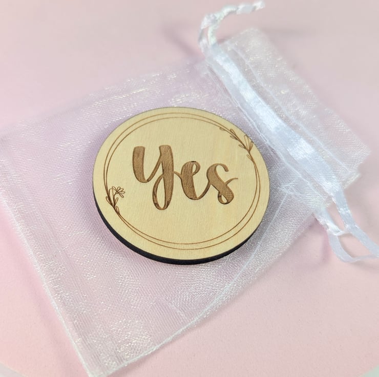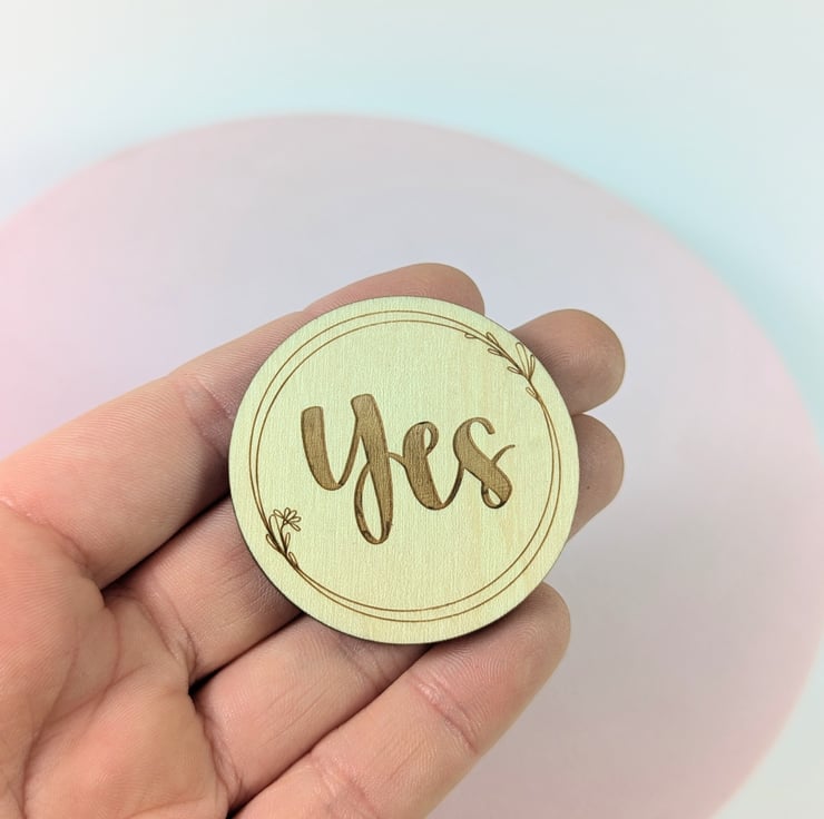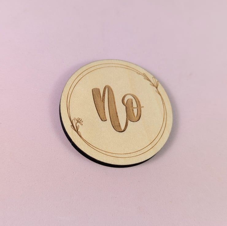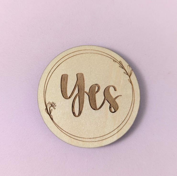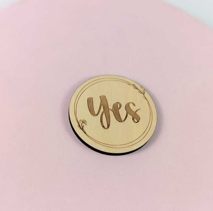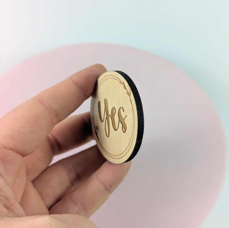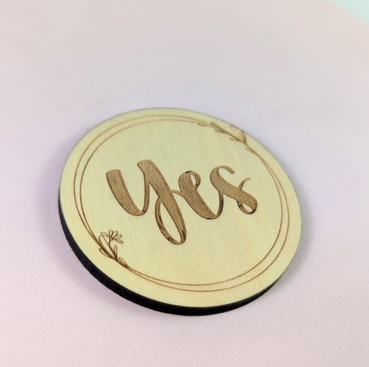 Each side is engraved with Yes / No but I can engrave anything you want just keep in mind the space is limited so the more you write, the smaller it will be.