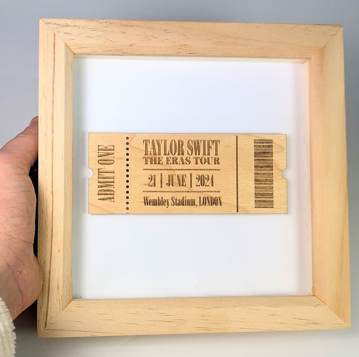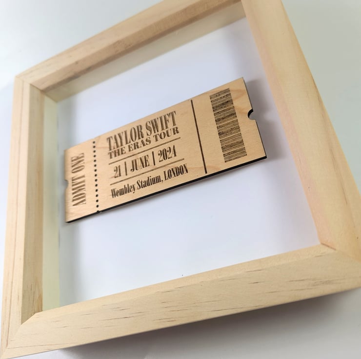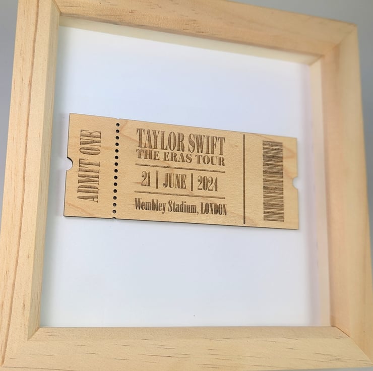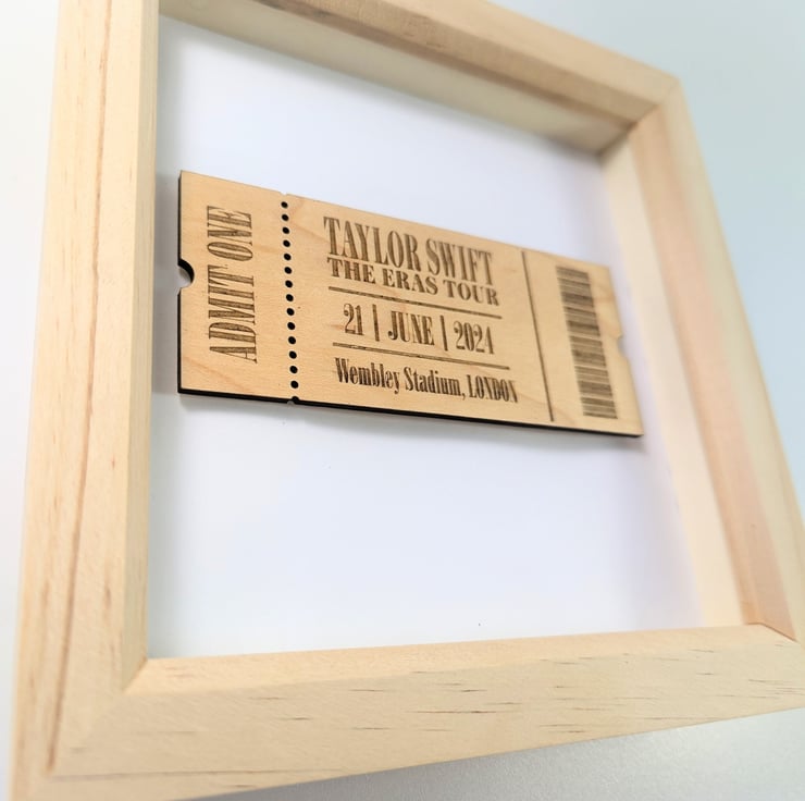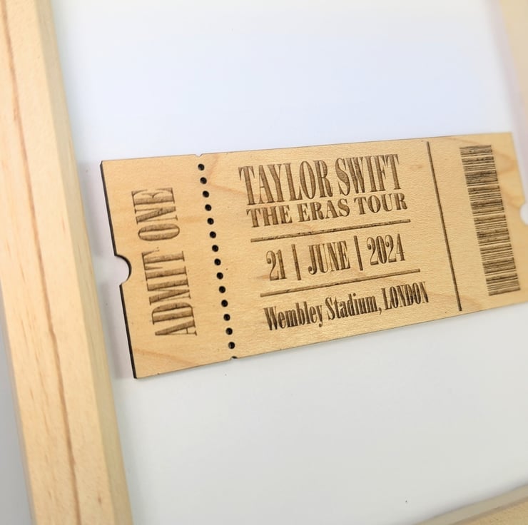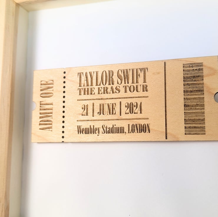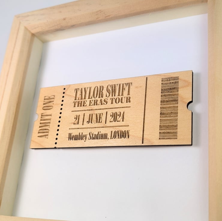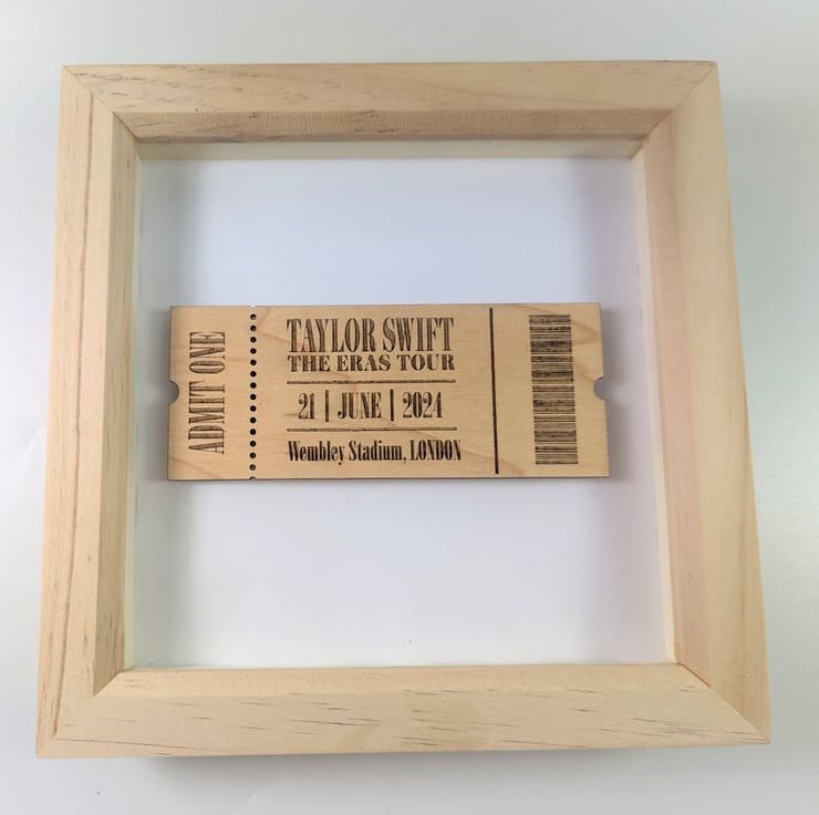 Quantity: This article includes 1 frame with a custom Taylor Swift Eras tour ticket in wood.