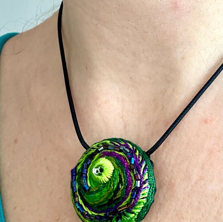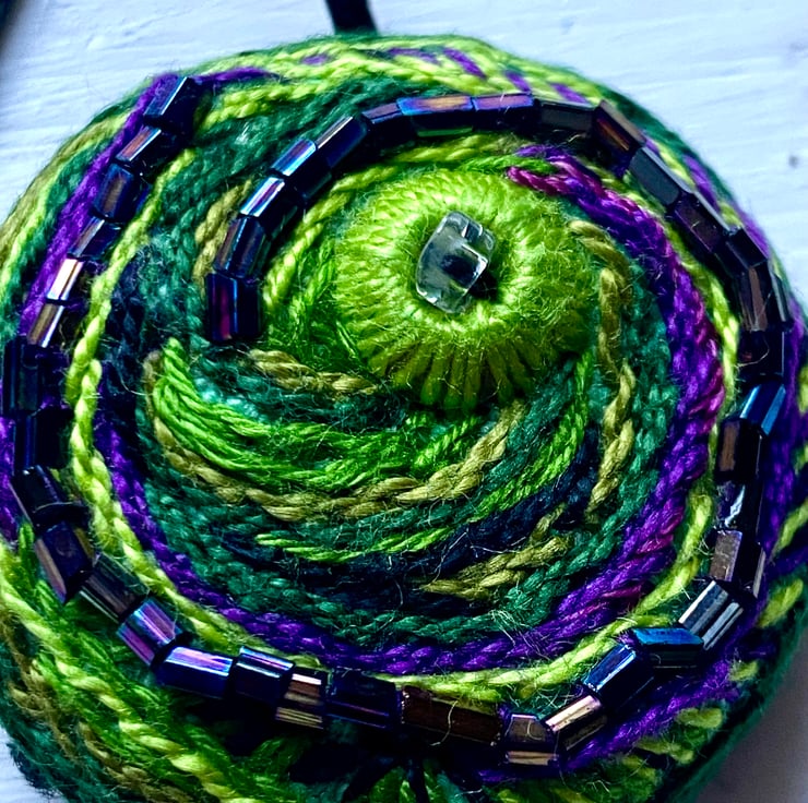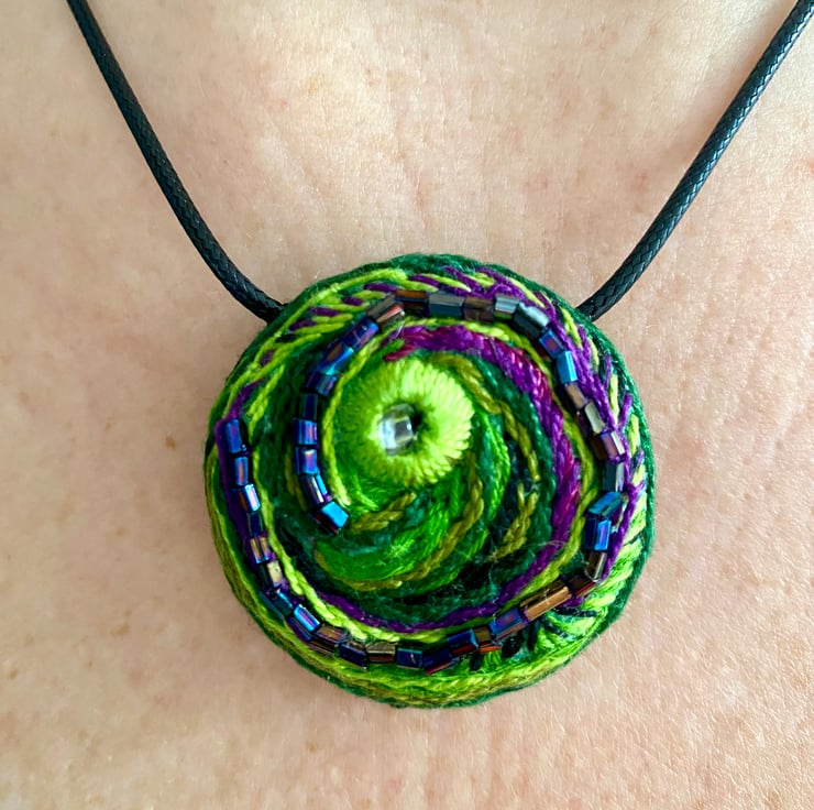 Beautiful hand embroidery stitches combined with beads make for an eye catching design.
