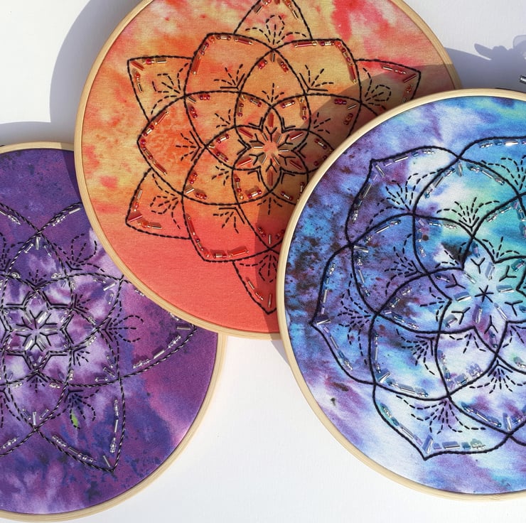 Beautiful mandalas to stitch and embellish with glass beads.
