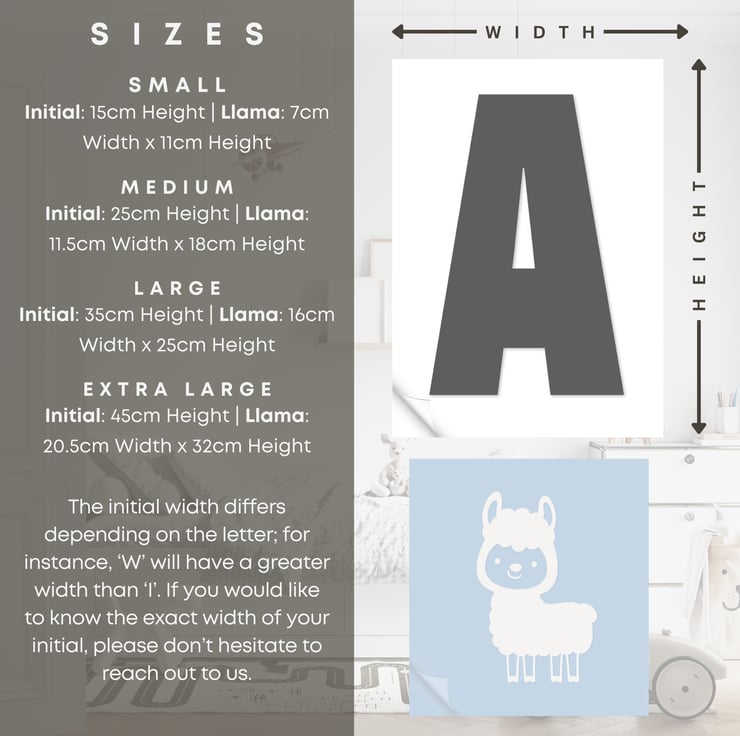 Medium - Initial: 25cm Height - Llama: 11.5cm Width x 18cm Height