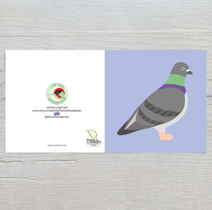 Vibrant, colourful pigeon card which is blank inside for your own message.