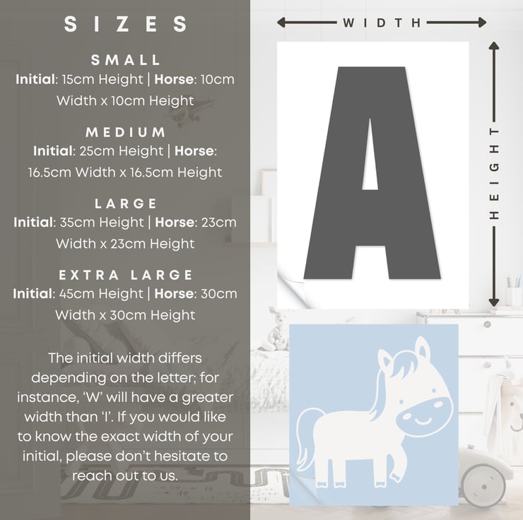Medium - Initial: 25cm Height - Horse: 16.5cm Width x 16.5cm Height