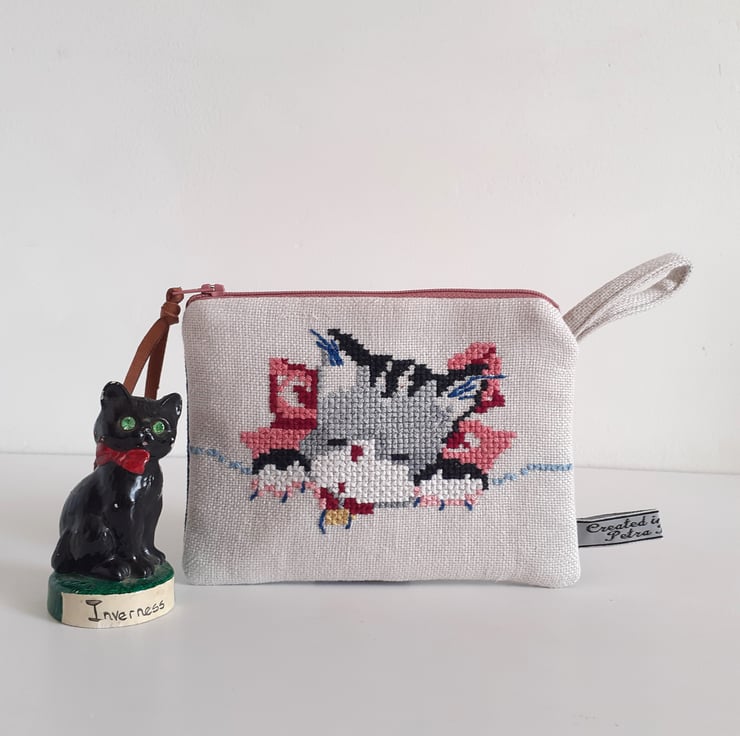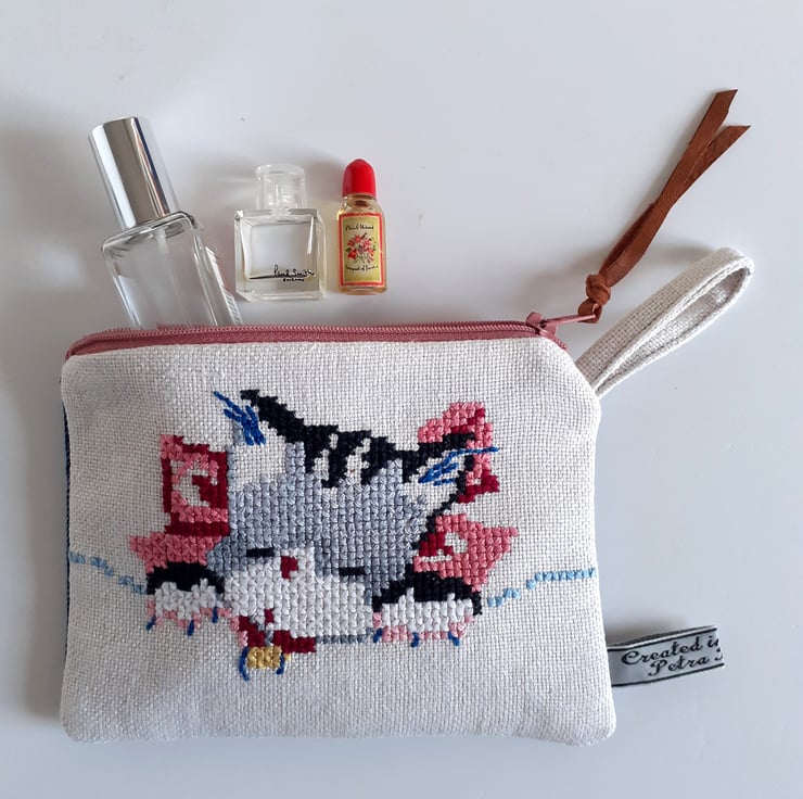 A useful little bag for make up, coins or for storing treasures. Or, pop it in your travel bag to keep your jewellery protected. It would make a great gift for a cat lover, or a little going away to Uni present.
