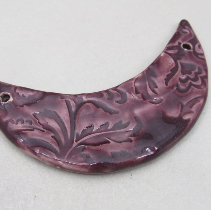 Aubergine Purple Brocade Ceramic Crescent Bib Pendant