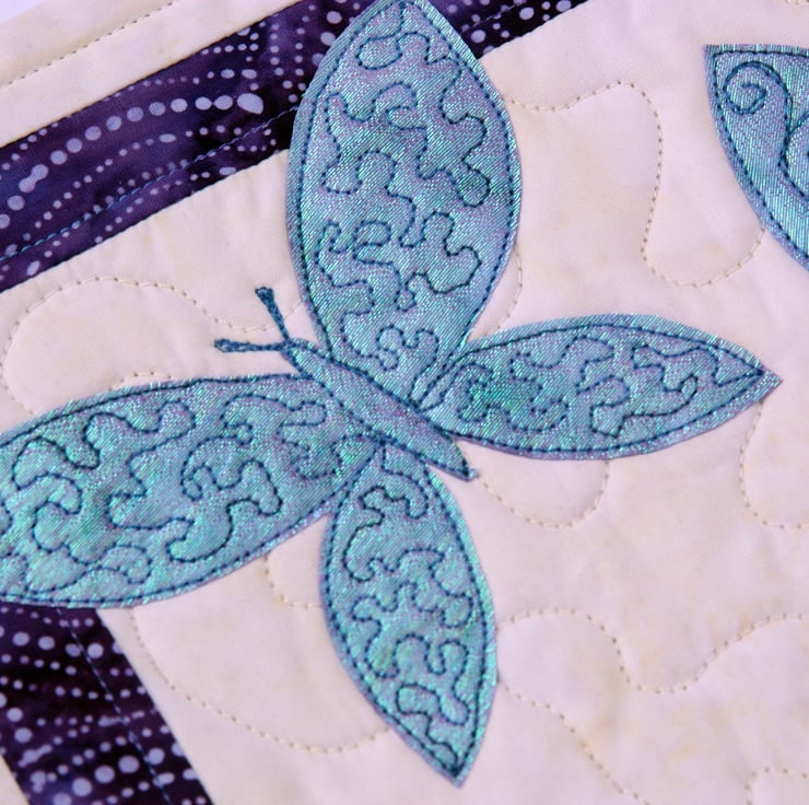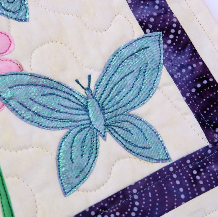This design uses raw edge applique. I would recommend this to crafters familiar with free motion embroidery.