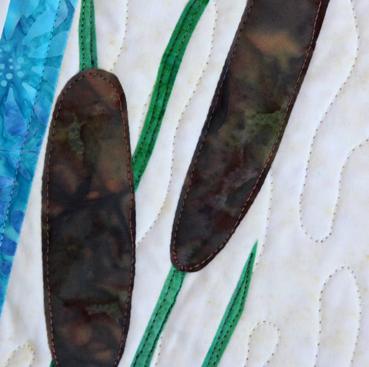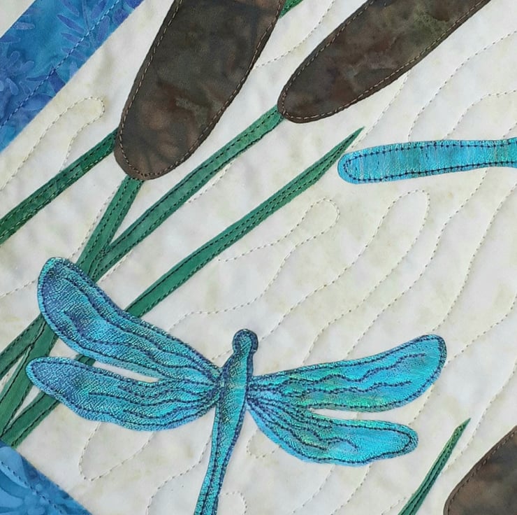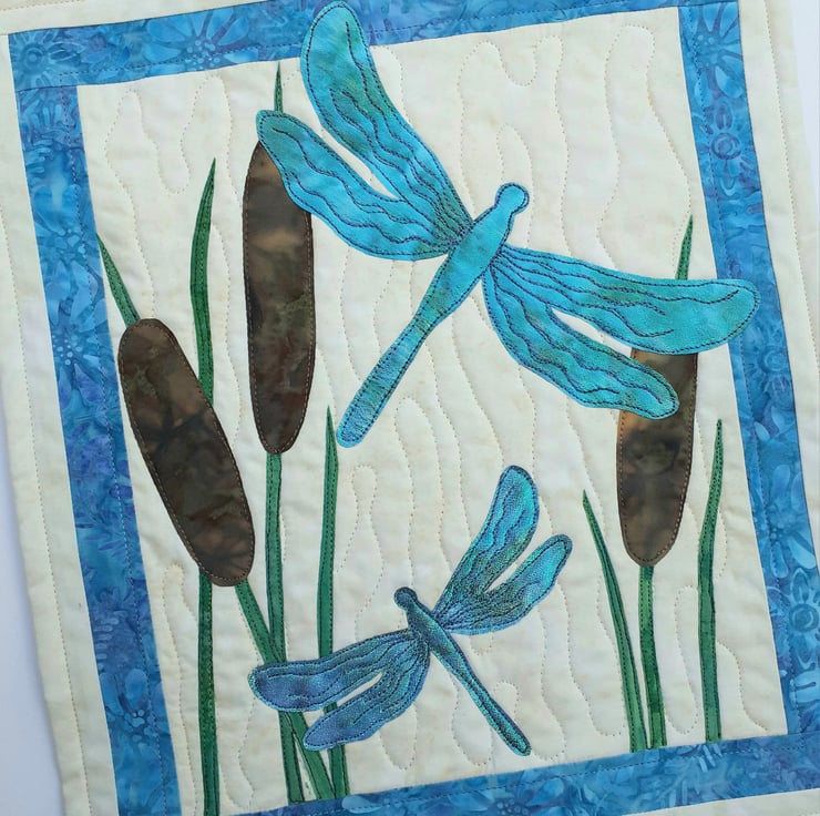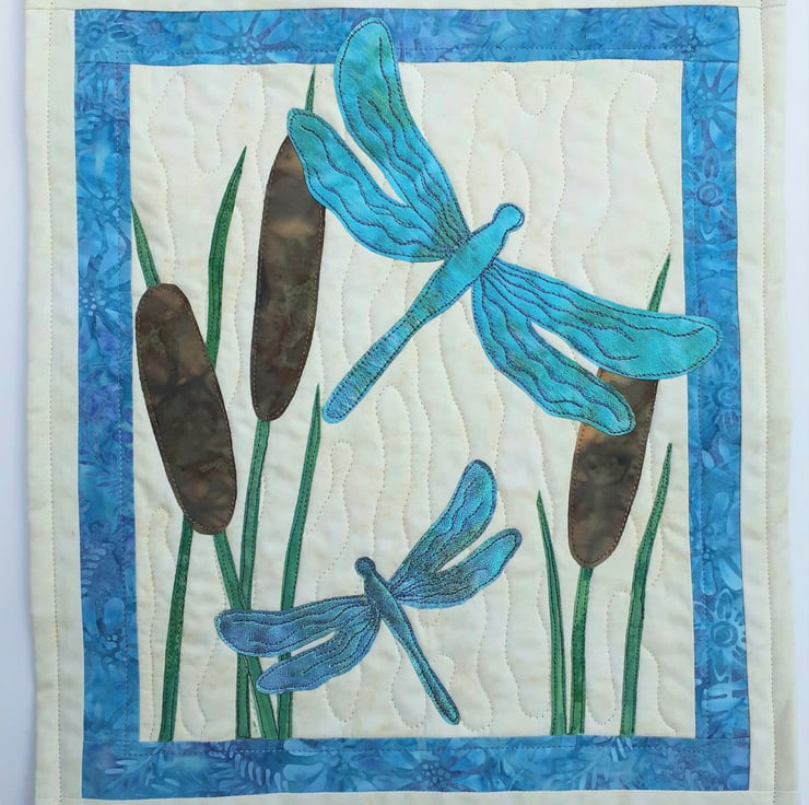 The art quilt measures 29cm x 38cm / 11 1/2 x 15 inches.