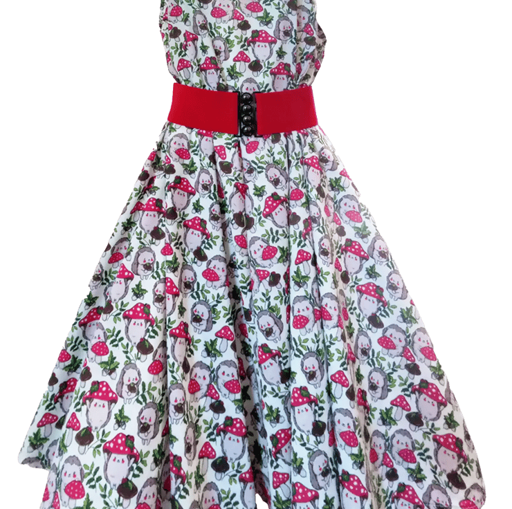 Get ready to rock the 50s look with this vintage style midi dress by Tuxcat This A line dress features an adorable hedgehog print on a creamy background, perfect for any occasion. The scoop neckline and sleeveless design add a touch of elegance, while the zip closure makes it easy to wear. Crafted with in polycotton this dress is both comfortable and stylish.