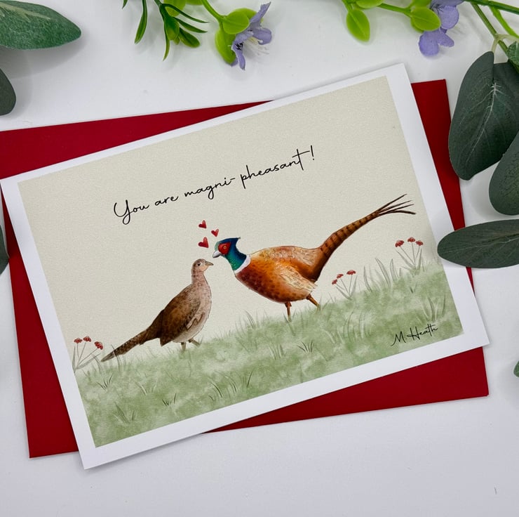 You are magni-pheasant - Wish that special someone a Happy Valentines or Happy Anniversary or even just a general uplifting card to send with this cute card perfect for birdpheasant lovers, or fans of nature!
