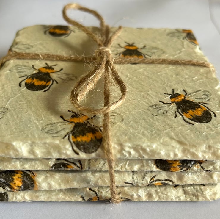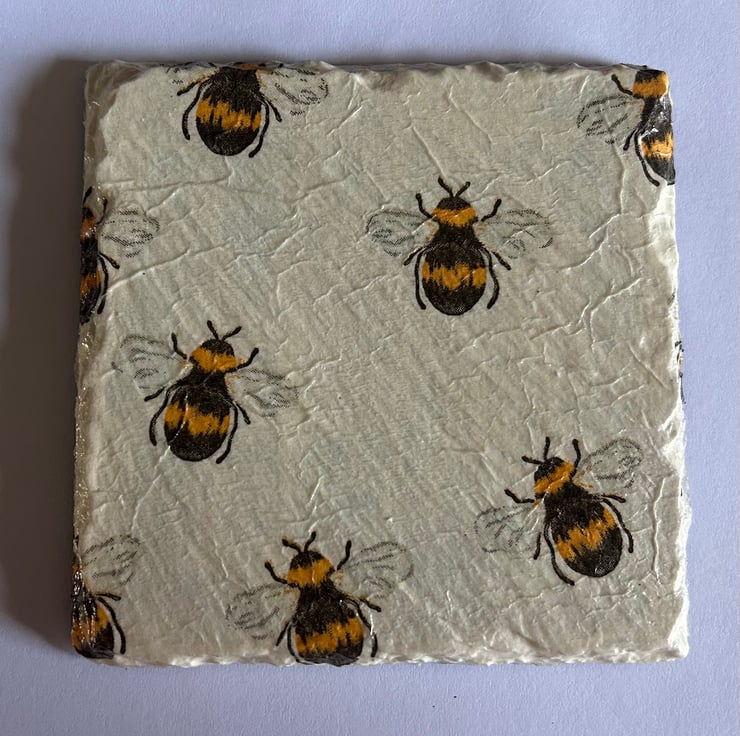 Each item is made from a slate coaster and napkin decoupage. They are finished with heatproof varnish to make them hardwearing and give them a lovely shine.